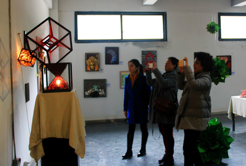 在造型艺术系代鹏程同学的《信·簪》、向阳江同学的《绚》等作品前,沈铁梅停下脚步、仔细观察。她说,这些作品综合了造型美术和木艺、漆艺等工艺,体现着中华传统文化的魅力,十分吸引人,与川剧艺术符号的结合,又能使它们焕然一新,呈现出另一种艺术形态。
