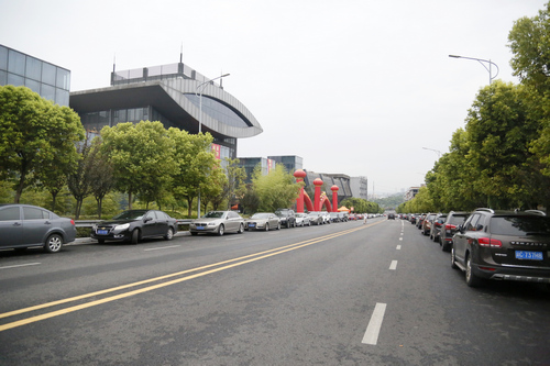 一大早,学校校门外的马路就被家长们开来的送孩子报到的私家车停得满满当当