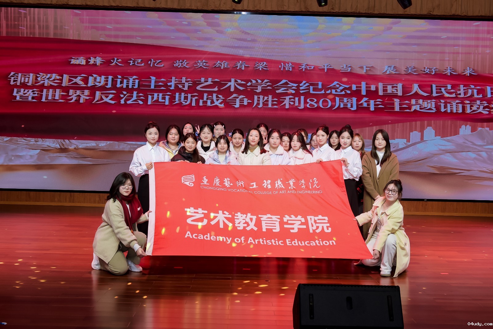 12月5日,由铜梁区文联主办、区朗诵主持艺术学会承办的"诵烽火记忆 敬英雄脊梁 惜和平当下 展美好未来"主题诵读活动在区老年大学演出大厅隆重举行。星空棋牌苹果版艺术教育学院作为协办单位,100多位学生参与,选派优秀学子为活动献上开场节目《烈火中的丰碑——邱少云烈士事迹诵》,以专业素养和饱满热情赢得现场观众热烈掌声。