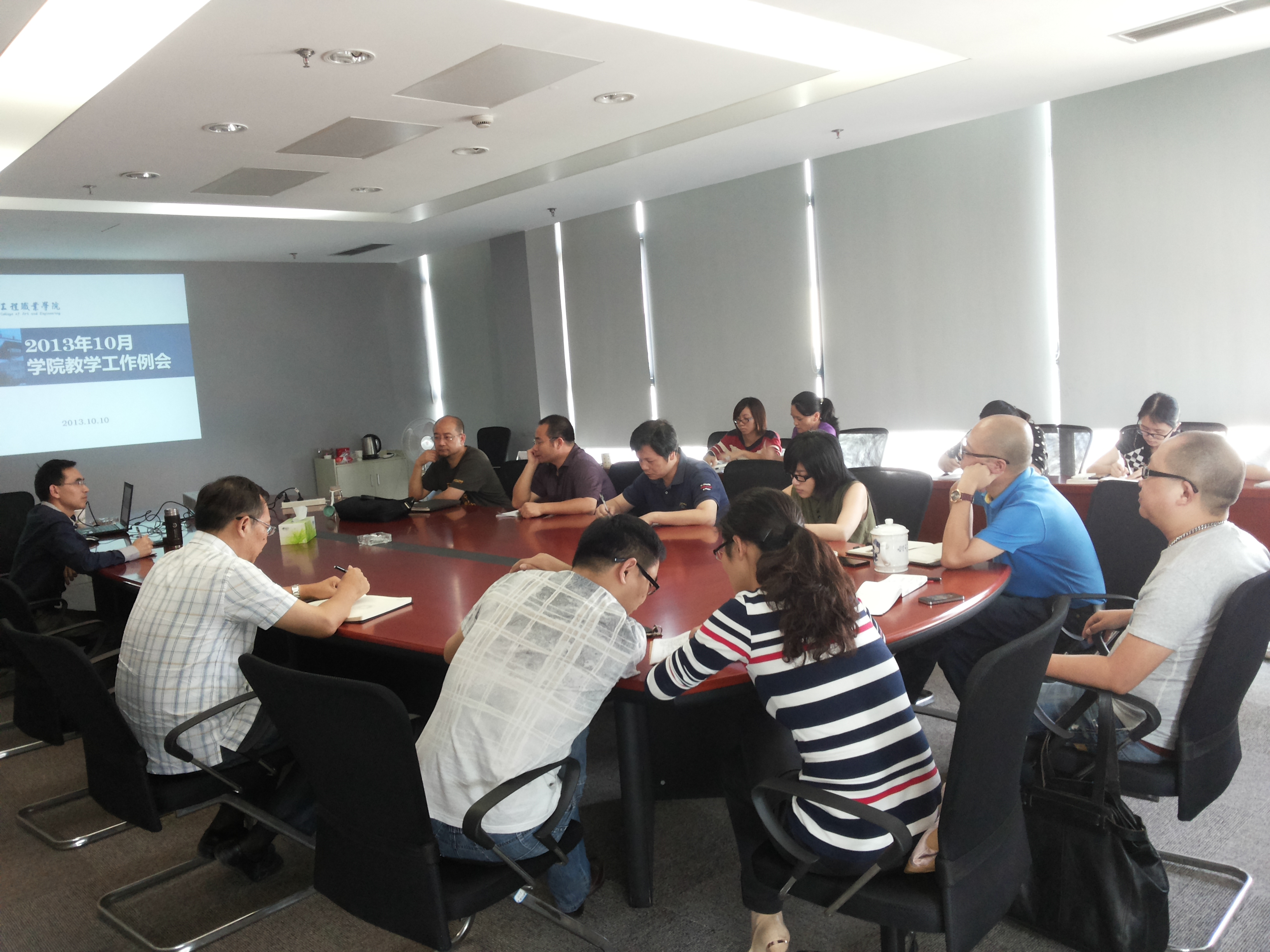 一、各系部简要汇报了9月份教学工作情况,总体运行情况较好。副院长尹端、何全先基于对实习学生状况的实地考察,指出有些学生实习比较被动,我们老师要教学生主动学习,主动找位子,教学生突破僵局。各系部鼓励大一、大二学生对专业软件的学习,以准备参加全国性的比赛。在会上,雕塑系与大家探讨了对学生违纪如何给予警告和处分的问题。