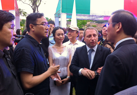6月3日,意大利驻重庆总领事馆首次在重庆举办意大利国庆日活动,意大利驻华大使白达宁(上图右)和重庆市副市长刘强(上图左)出席了活动开幕式。