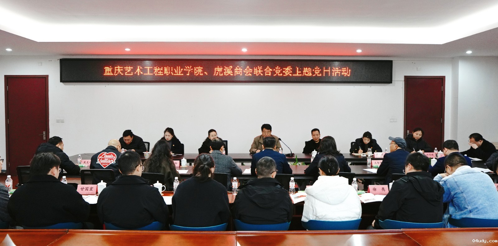 会议伊始,与会人员共同观看了我校的宣传片,对学校的发展历程、办学特色和成果有了初步了解。紧接着,许世虎副校长从校企合作、产教融合等多个维度,向参会人员详细介绍了学校的基本情况。随后,滕健书记就虎溪商会联合党委的组织架构、发展历程以及主要工作情况进行了全面且细致的介绍。