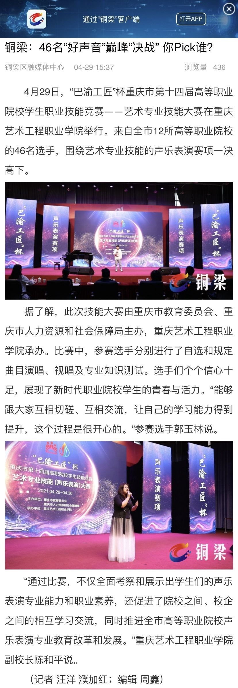 铜梁融媒体:46名好声音巅峰决战,你pick谁? 阅读:次 更新时间: 2021-05-26 摄影:| 编辑:chenxuan 原文链接:https://h5.cqliving.com/info/detail/28520050.html?cid=28520050 上一篇:上游新闻:2600多名军训学员呈现巨大字体 高校以特殊形式迎接建党100周年 下一篇:重庆日报:46名选手同台竞技“巴渝工匠”杯声乐表演 分享到